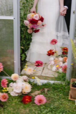 mood warm romantic vibes, red & orange, roses & dahlias, vintage, Italian romance